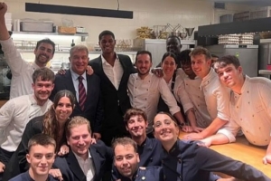 餐桌上供应了金枪鱼肚、大虾、蟹肉意面和圣帕乌豆等美食,随后还品尝了和牛和加利西亚黄牛肉,并以著名的芝士蛋糕作为甜点。晚宴结束后,拉什福德和俱乐部主席拉波尔塔与厨师和服务员合影留念,两人脸上洋溢着对新旅程的兴奋之情。
